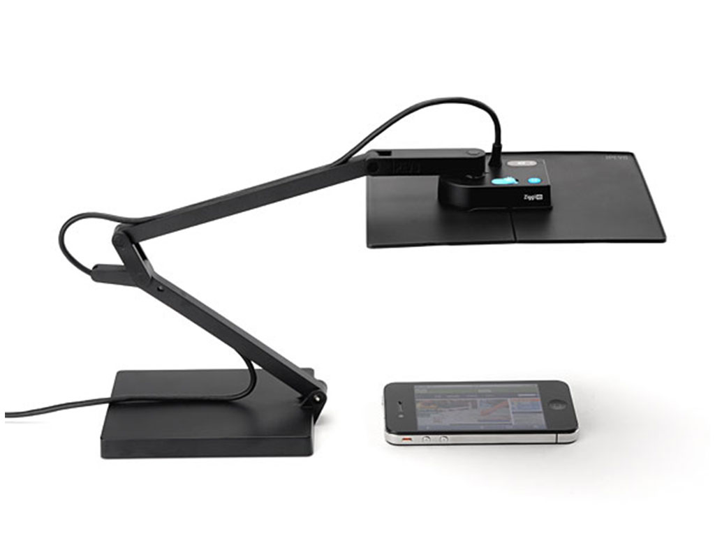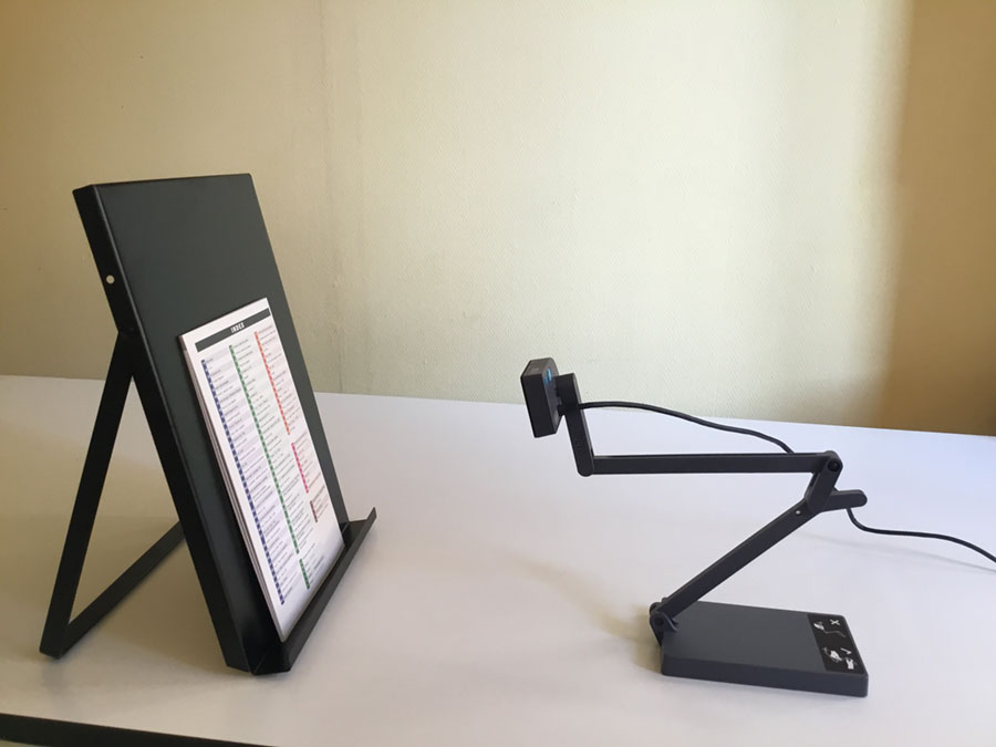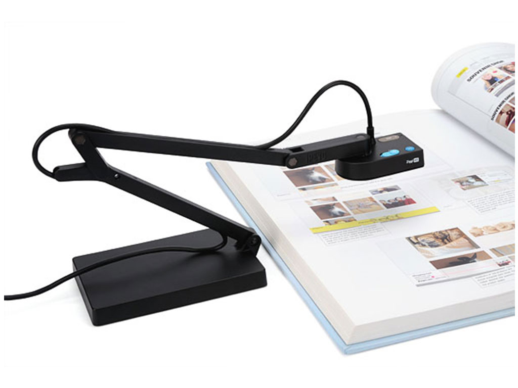 - Bras articulé et tête pivotante permettant de disposer dans différentes positions les documents et les objets