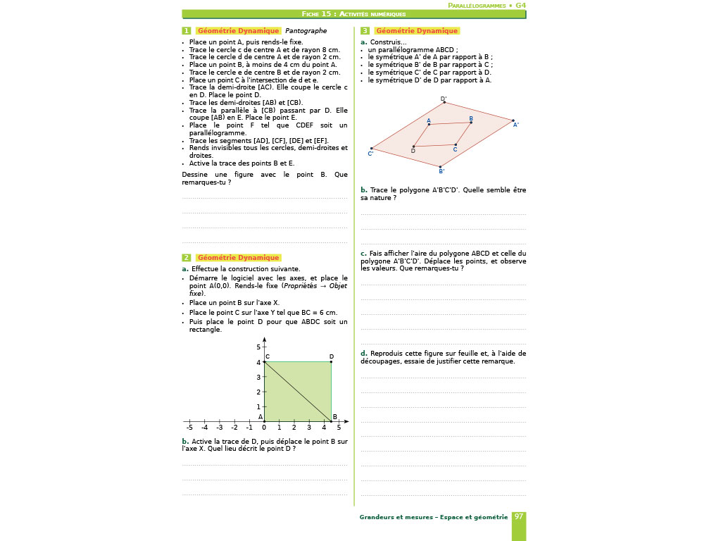 -> des activités numériques (géométrie dynamique, tableur) et des exercices d’algorithmique et de programmation.