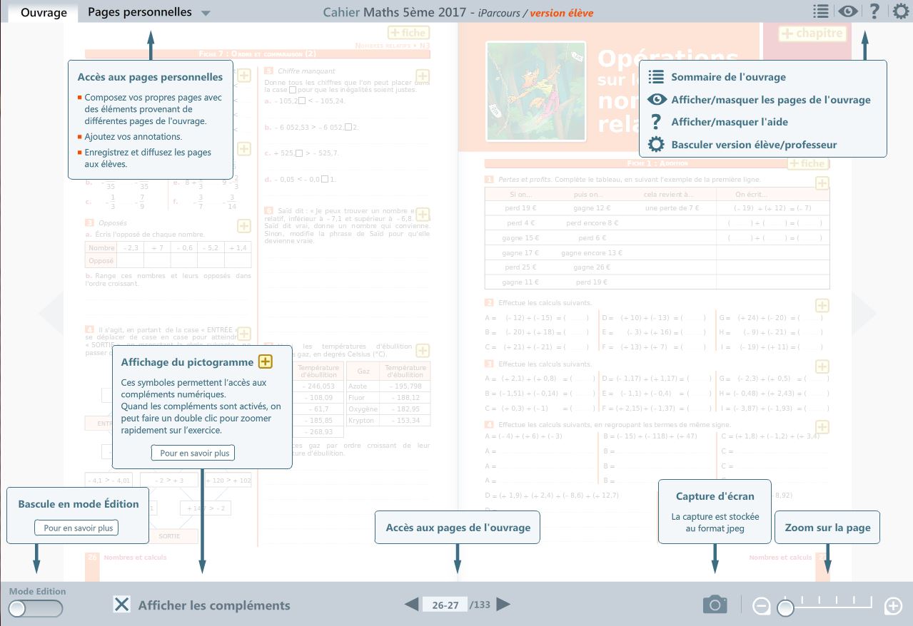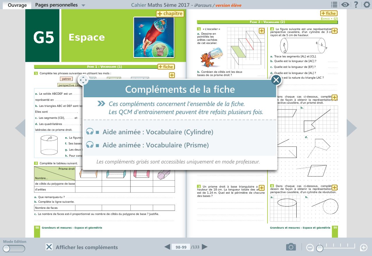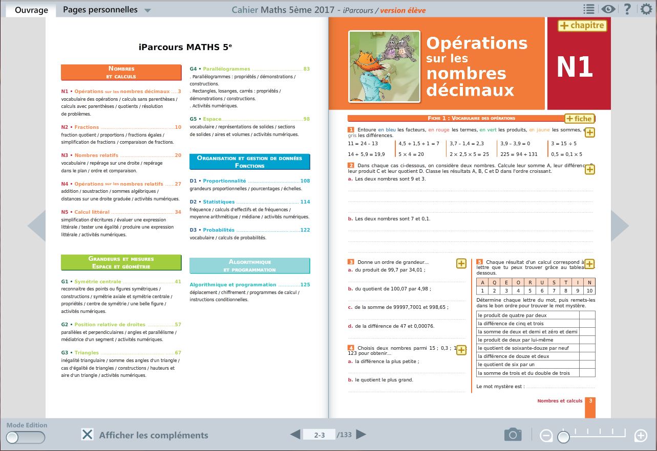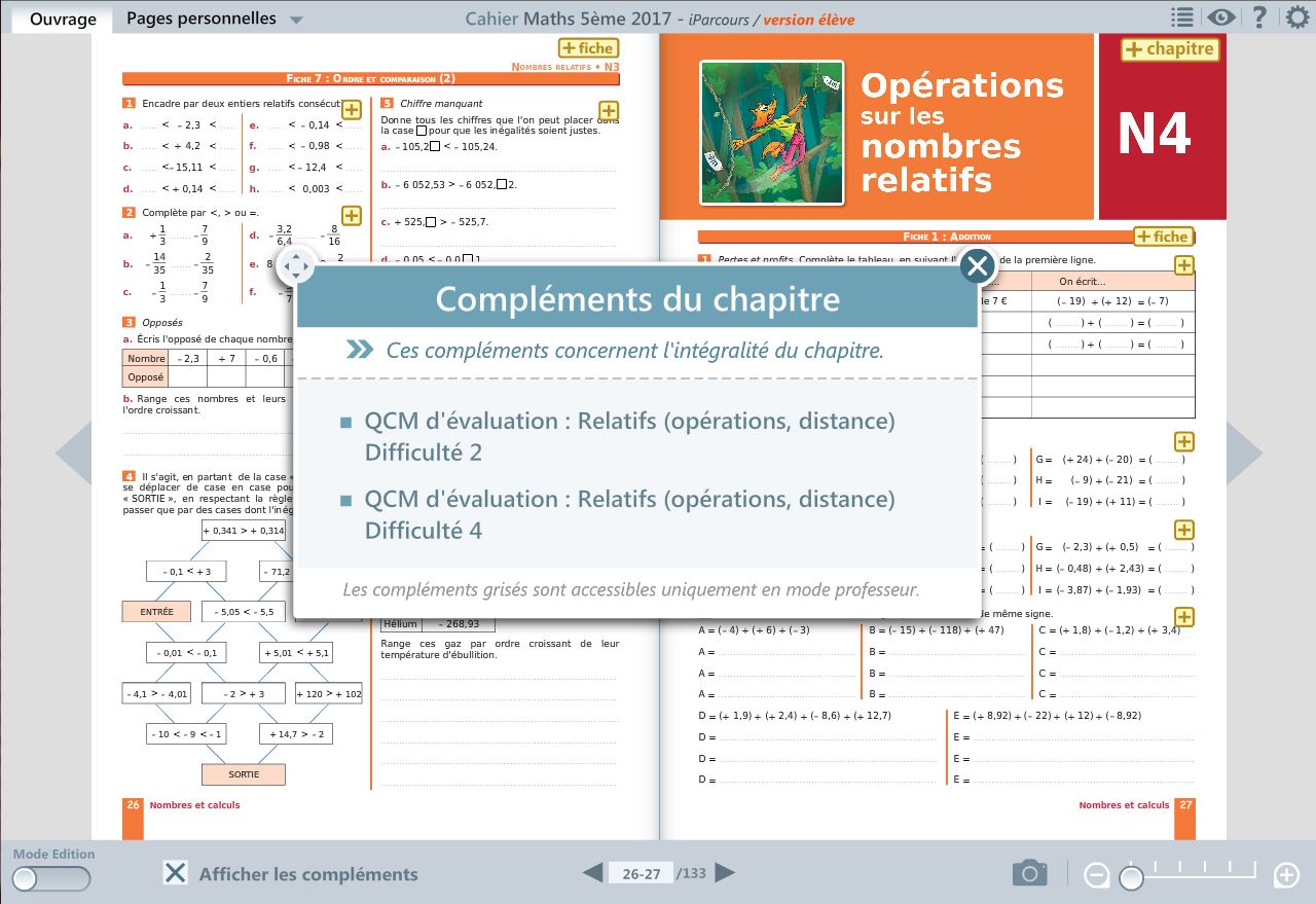 Découvrez la version numérique du Cahier iParcours Maths 5e (éd. 2017) :