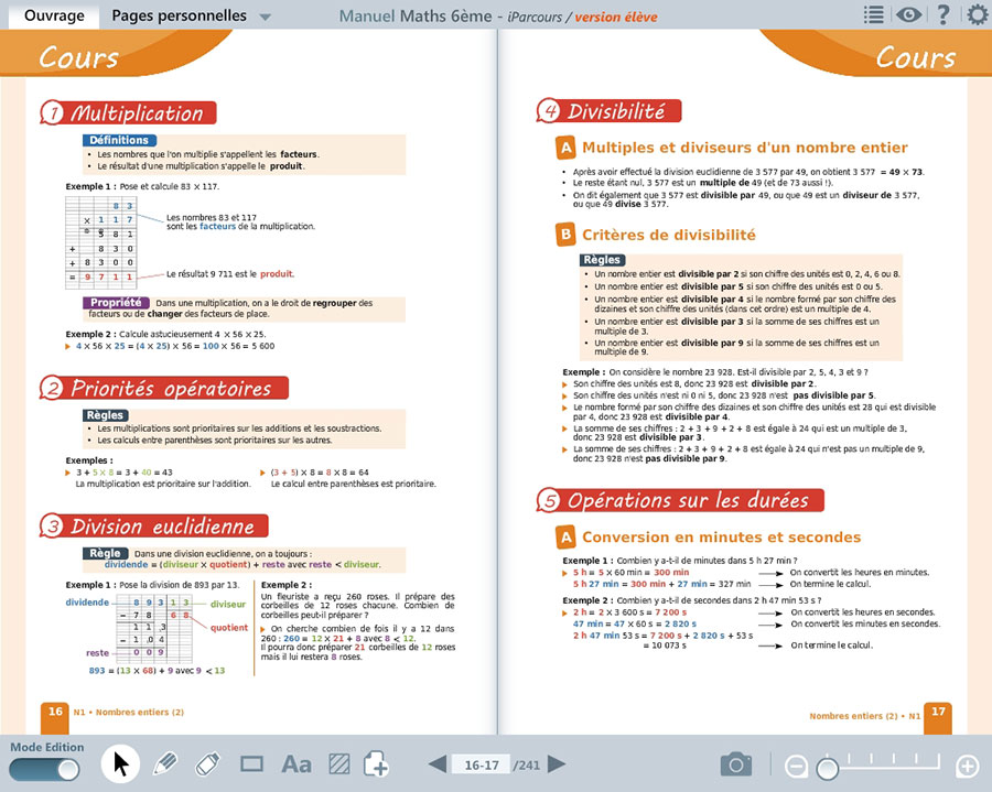 Ce logiciel permet d'afficher ou de projeter le Manuel iParcours Maths 6ème, sans être connecté à Internet. Vous bénéficiez de compléments interactifs ainsi que des corrigés de tous les exercices.