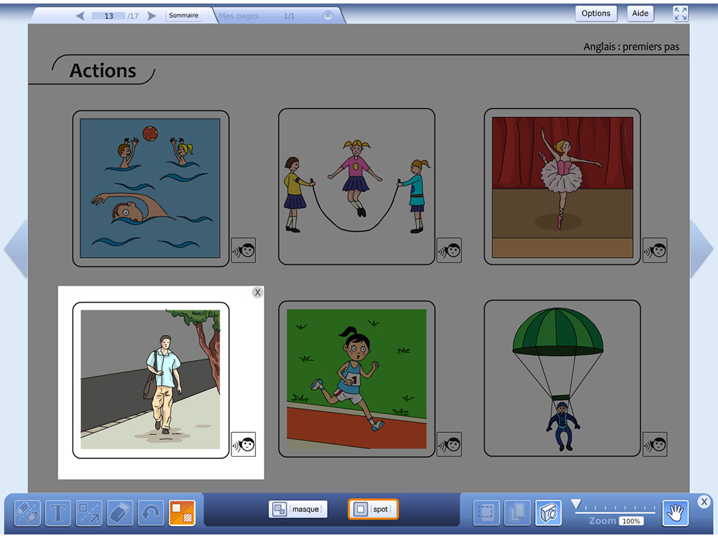 Le logiciel peut être utilisé seul ou en complémentarité avec le dossier pédagogique Anglais : premiers pas.