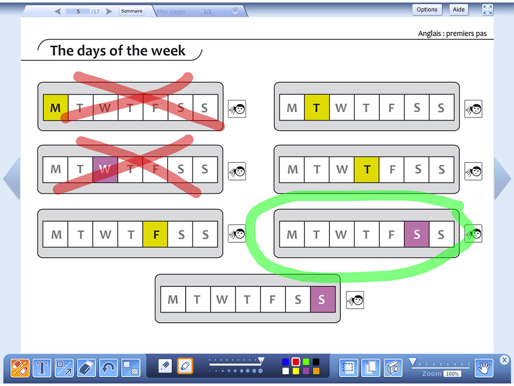 Une palette d'outils interactifs permet à l'enseignant de dynamiser les échanges. En vidéoprojection il intervient depuis son ordinateur ; sur TBI l'enseignant et les élèves interviennent sur le tableau avec le doigt ou le stylet.