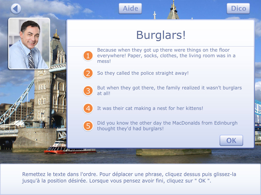 Les activités proposées visent la compréhension par l'élève de textes courts et simples (niveau A2), puis de textes rédigés dans une langue courante sur des sujets concrets ou abstraits (niveau B1).