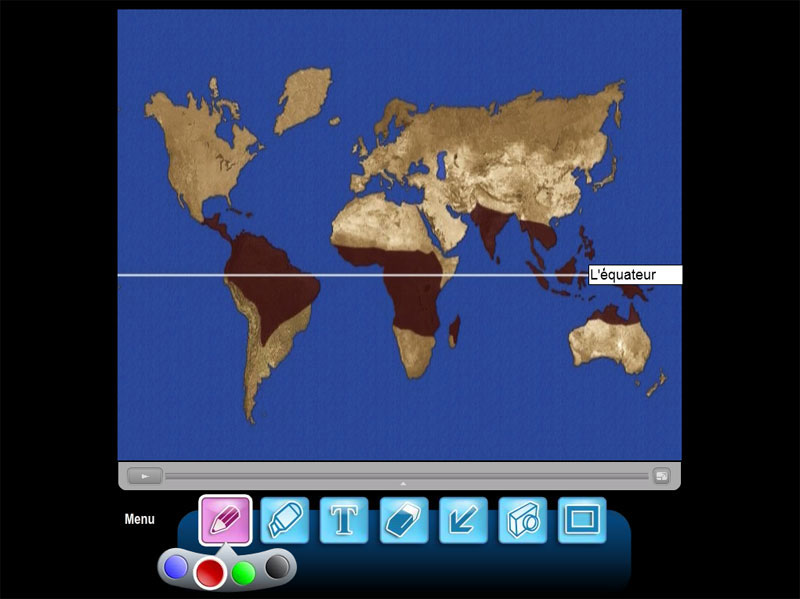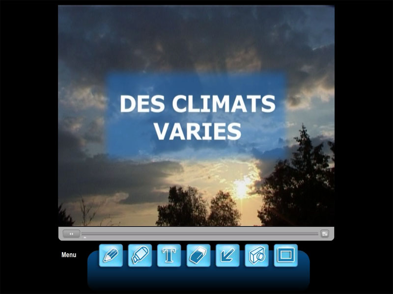 - en "vidéoprojection interactive" : depuis son poste, l’enseignant attire l’attention des élèves sur un point particulier : il interrompt la vidéo, annote, encadre, surligne, trace des flèches, etc. Il peut également enregistrer les éléments projetés pour les récupérer dans d’autres applications.