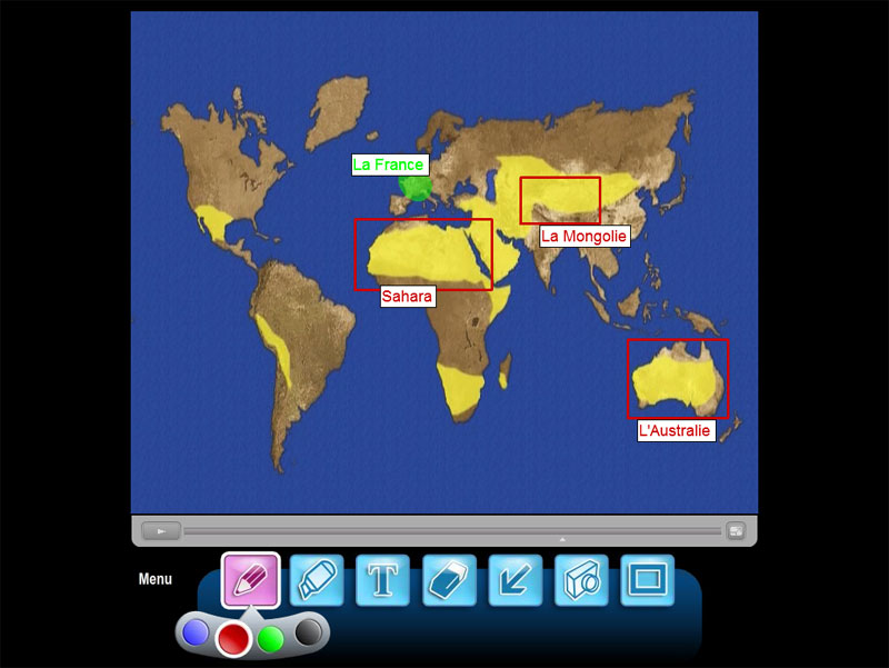 - sur un TBI/TNI : l’enseignant et les élèves peuvent intervenir directement sur le tableau au doigt ou avec un stylet.