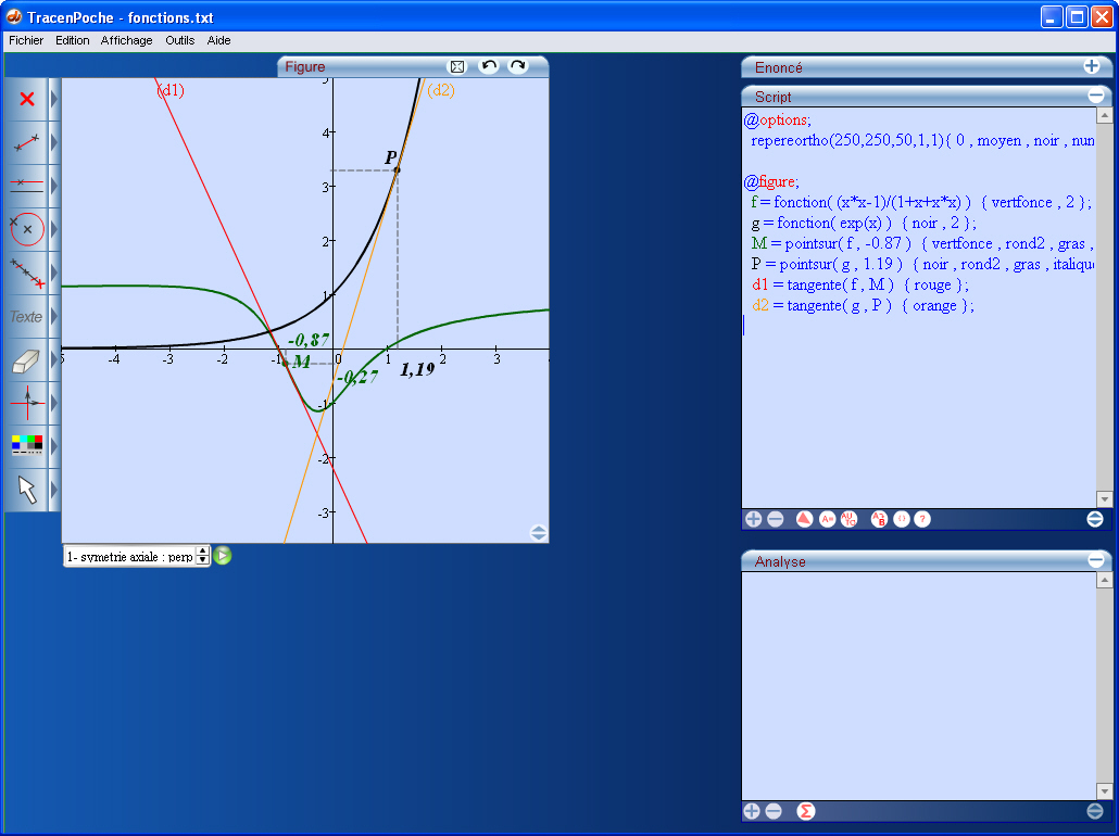 Tracenpoche est un logiciel de géométrie dynamique qui permet de construire une figure mais aussi de déplacer les éléments mobiles de cette figure. Il offre des possibilités de visualisation qui ne sont pas réalisables sur du papier, ou sur un tableau avec les outils de construction traditionnels.