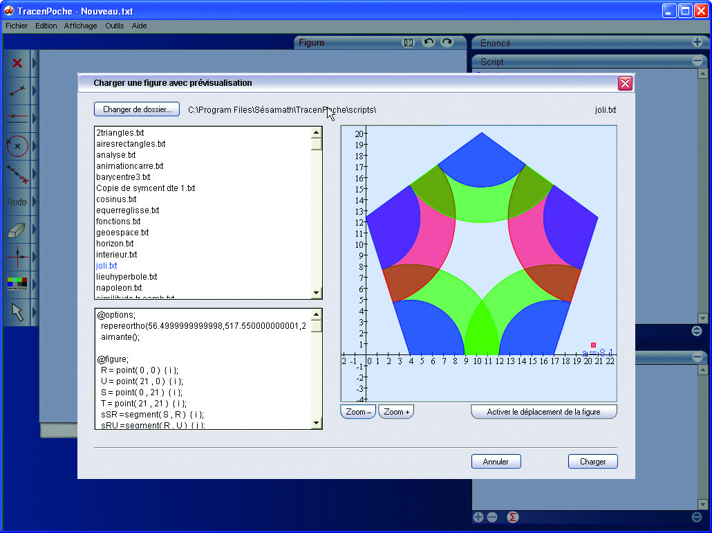 TracenPoche, un logiciel de géométrie dynamique qui permet de construire une figure mais aussi de faire bouger les éléments mobiles de cette figure...
