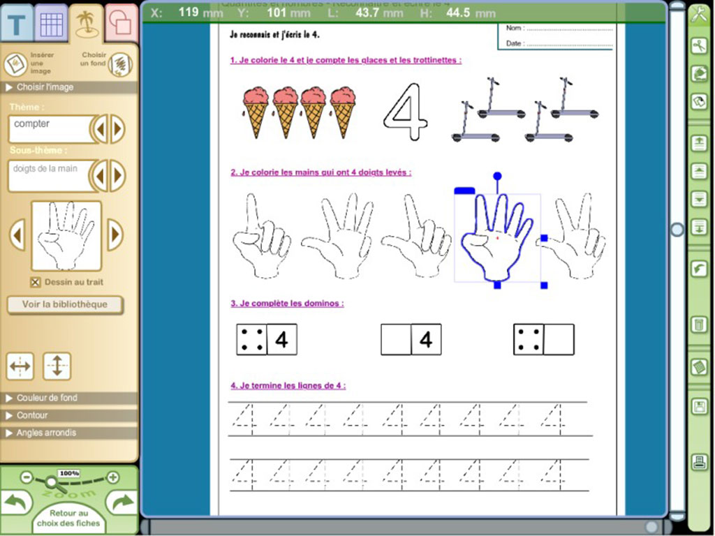 - logiciel en téléchargement (Windows) permettant d'imprimer et de personnaliser les fiches en modifiant les textes et les images ;