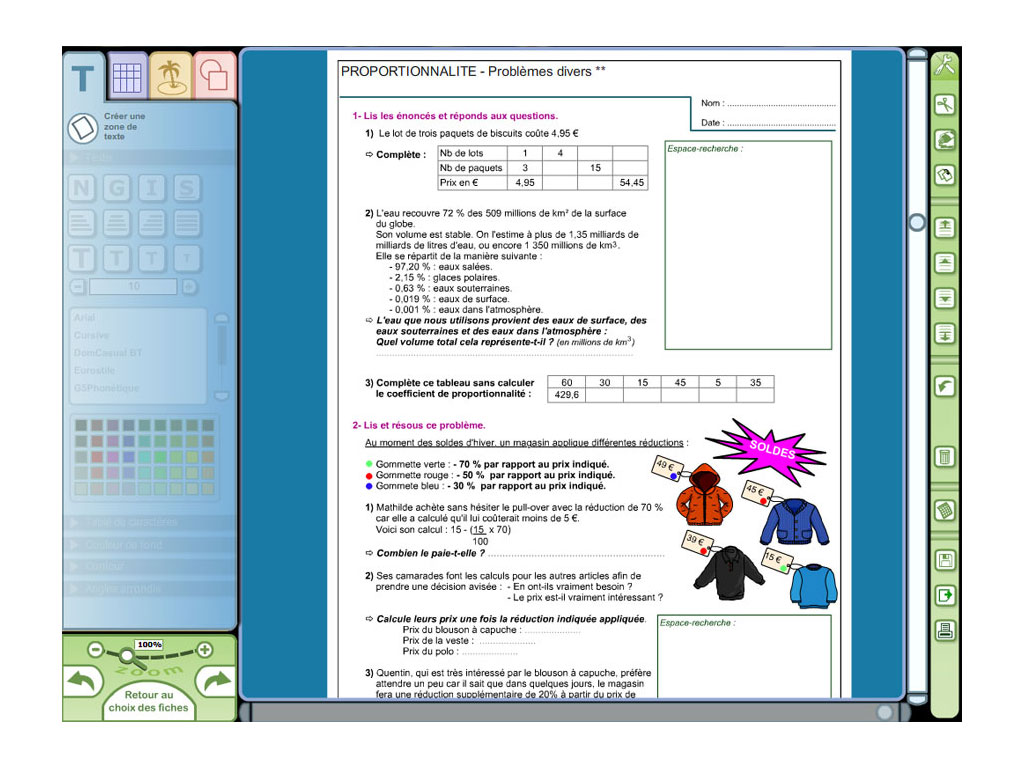 - logiciel en téléchargement permettant d'imprimer et de personnaliser les fiches en modifiant les textes et les images ;