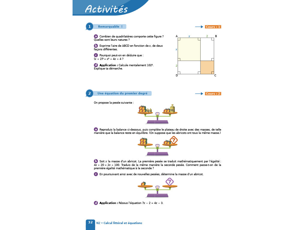 Des activités numériques (tableur et géométrie dynamique) figurent dans les différents chapitres.
