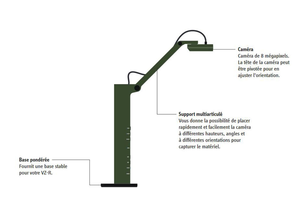 Caractéristiques techniques du visualiseur G5-VZ-R :| Caméra | Définition : 8 Méga-pixels / Résolution : jusqu'à 3264 x 2448 |