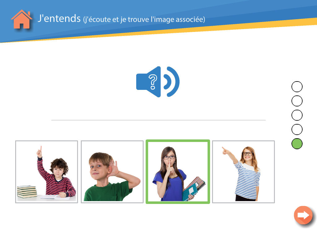 2. J'entends : il entend un mot ou une expression et s'amuse à retrouver l'image correspondante.