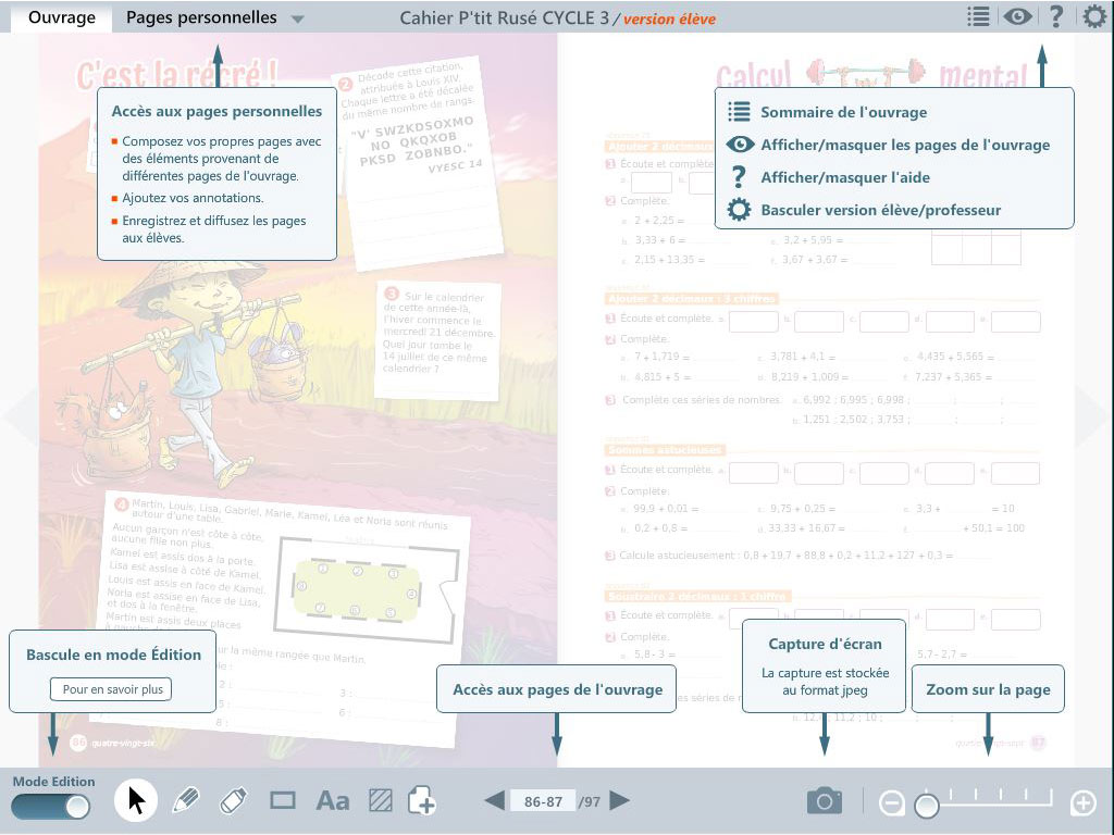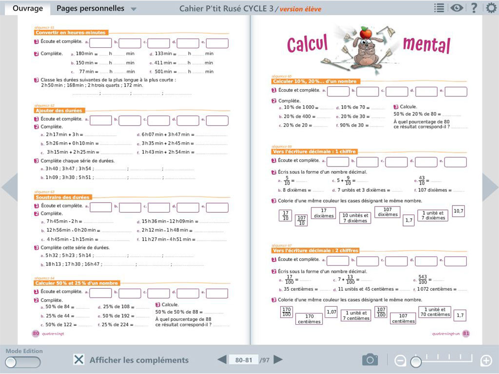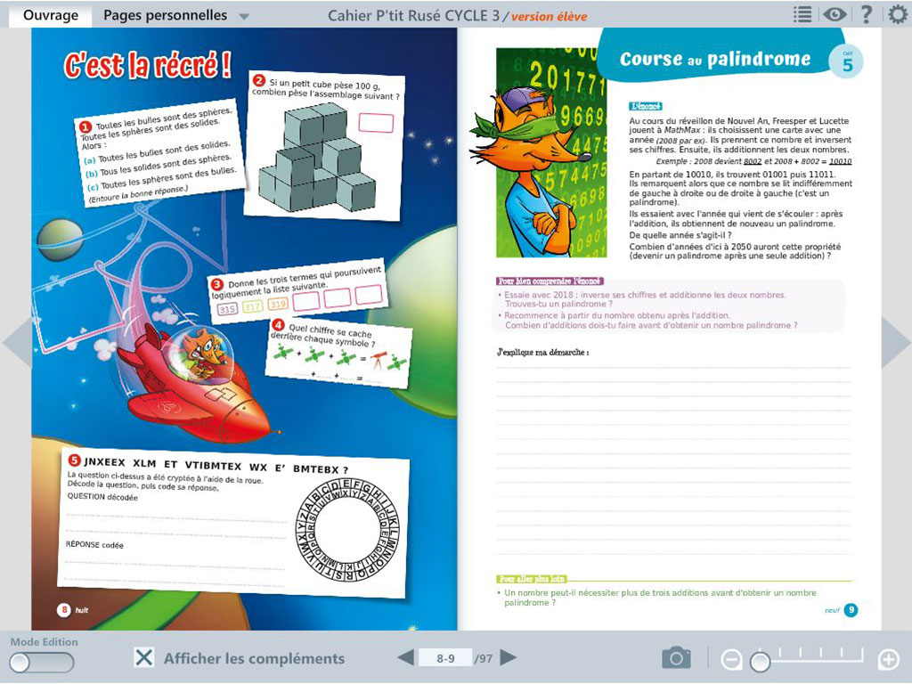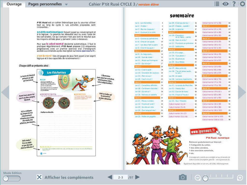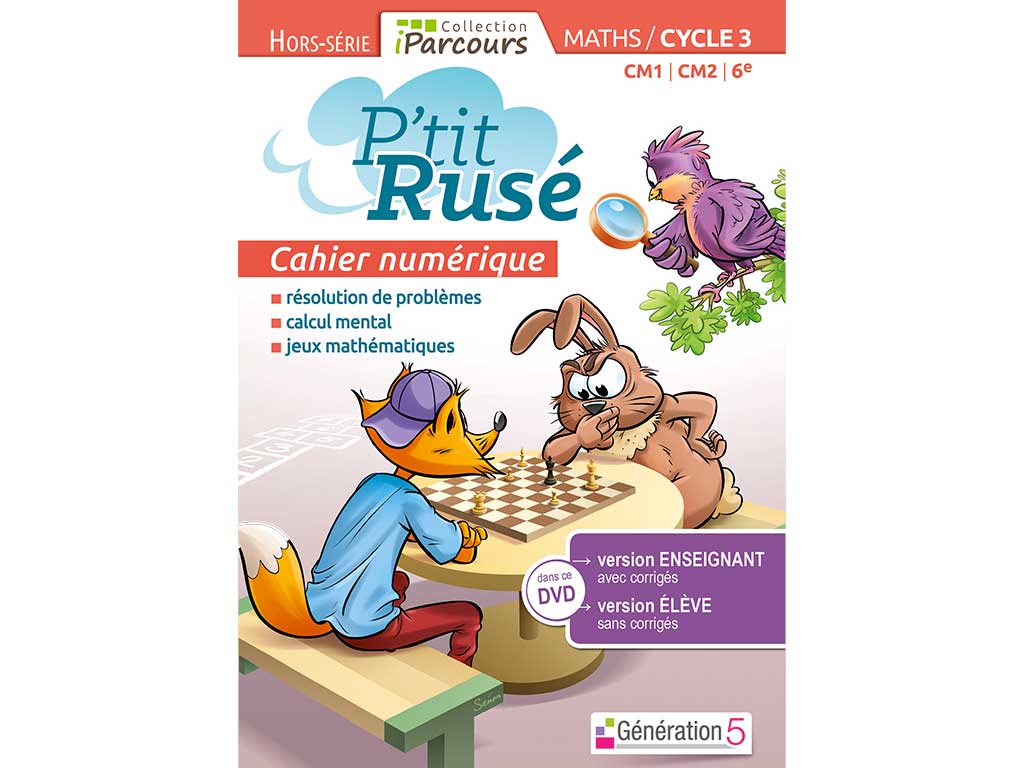 Le cahier numérique P'tit Rusé Maths - Cycle 3, de la collection iParcours, est un logiciel qui permet d'afficher ou de projeter le cahier d'exercices correspondant. Vous bénéficiez également de tous les compléments interactifs.