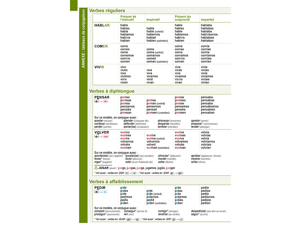 - Pages d'annexes : Tableaux de conjugaison