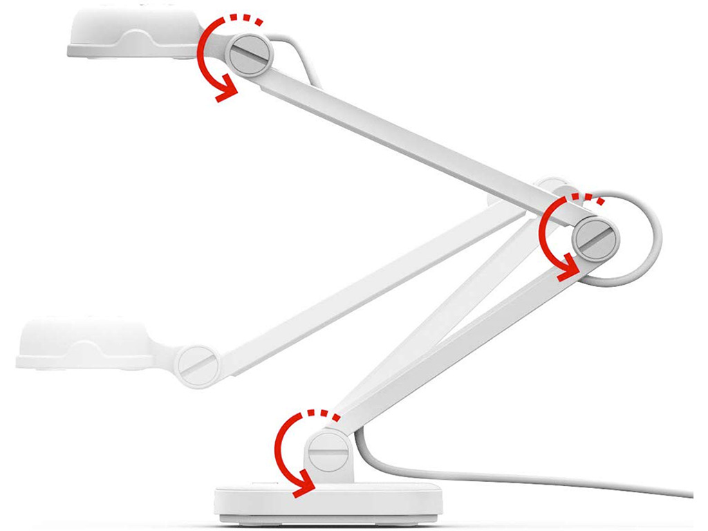 - Support articulé (avec resserrement facile des joints) et tête pivotante pour positionner la caméra sous n'importe quel angle