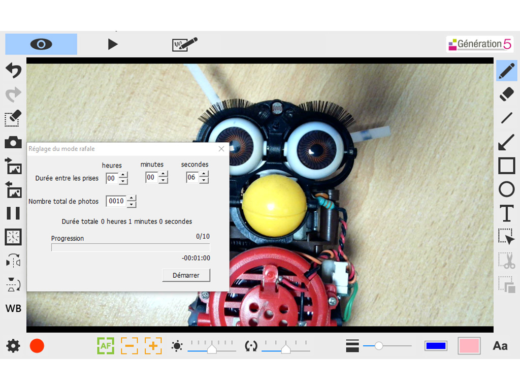 - arrêt sur image, prise de vue différée ou à intervalles réguliers.