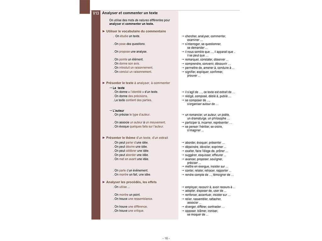 - 31 règles liées au vocabulaire : exprimer un but, utiliser les connecteurs, nuancer des verbes, décrire un lieu, enrichir un adjectif...