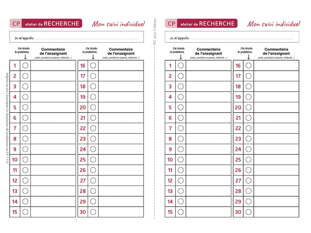 Des ressources numériques à télécharger : il s'agit de documents vidéoprojetables, notamment les photo-problèmes, les problèmes à travailler en ateliers de recherche et en ateliers autonomes ainsi que des grilles de suivi.
