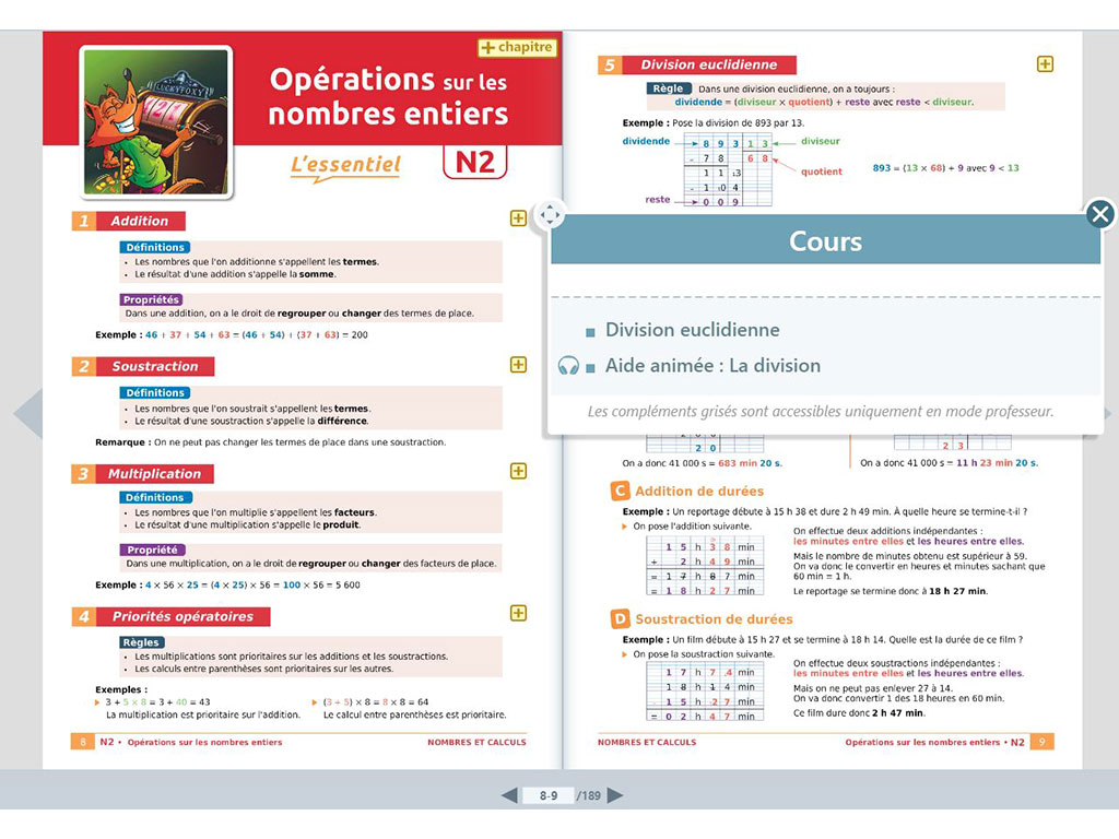 Vous bénéficiez également de compléments interactifs et ludiques pour enrichir le cours, ainsi que des corrigés de tous les exercices de mathématiques.