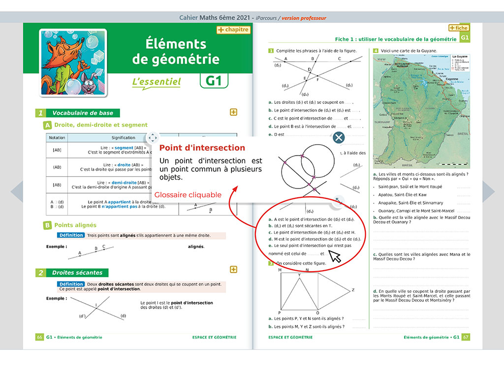 Présentation des activités de découverte, des questions Flash et du lexique cliquable du cahier numérique iParcours 6e.