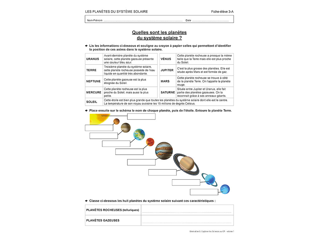 - La planète Terre. Les êtres vivants dans leur environnement (Mouvements de la Terre / La Terre dans le système solaire / Conditions favorables à la vie sur Terre).