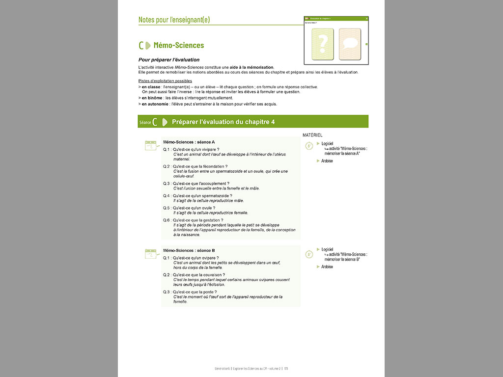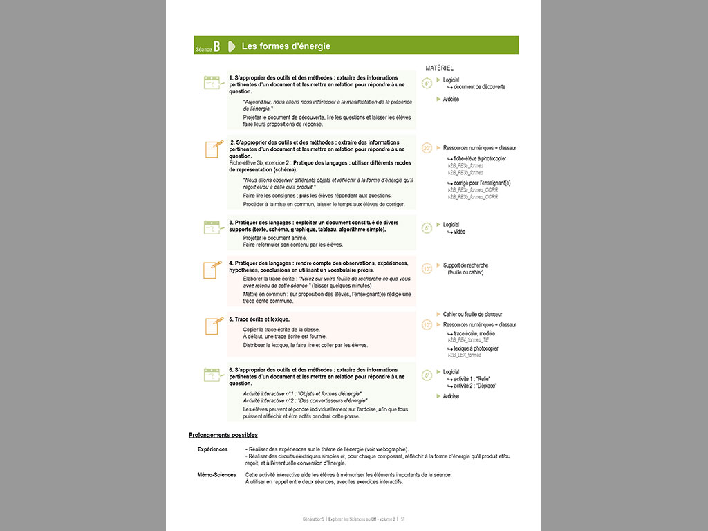 L'enseignant dispose de tous les éléments nécessaires pour mener à bien ses séances et proposer aux élèves une exploration des sciences d’une façon interactive, attractive et motivante.