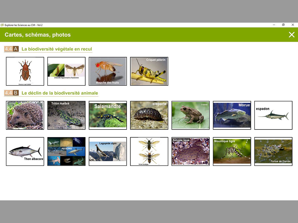 • Le vivant, sa diversité et les fonctions qui le caractérisent (classification des êtres vivants, développement des végétaux, développement et reproduction des animaux – vivipares, ovipares, avec mues et/ou métamorphoses -, développement et reproduction des êtres humains, production de matière par les organismes vivants) ;