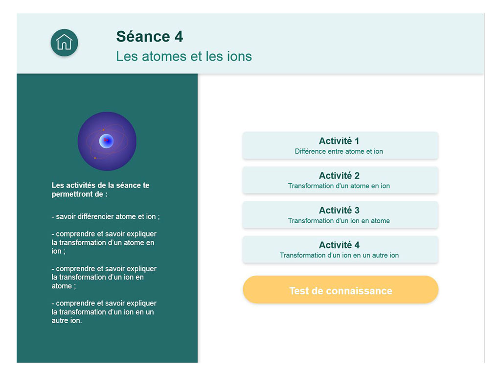 Ces séances permettent de mettre en œuvre le cours avec 89 activités numériques ludiques au travers d'outils de simulation d'expériences.