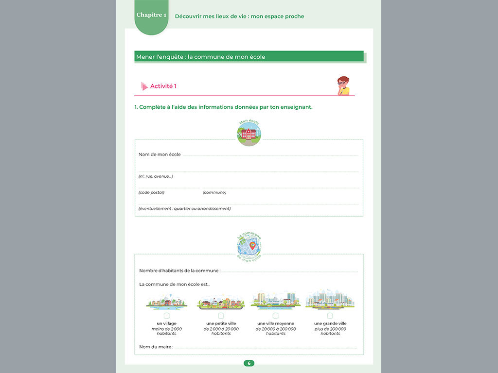 - un gain de temps et une économie de papier pour l'enseignant qui n'aura plus à photocopier les fiches-élèves du classeur Explorer la Géographie au CM1.