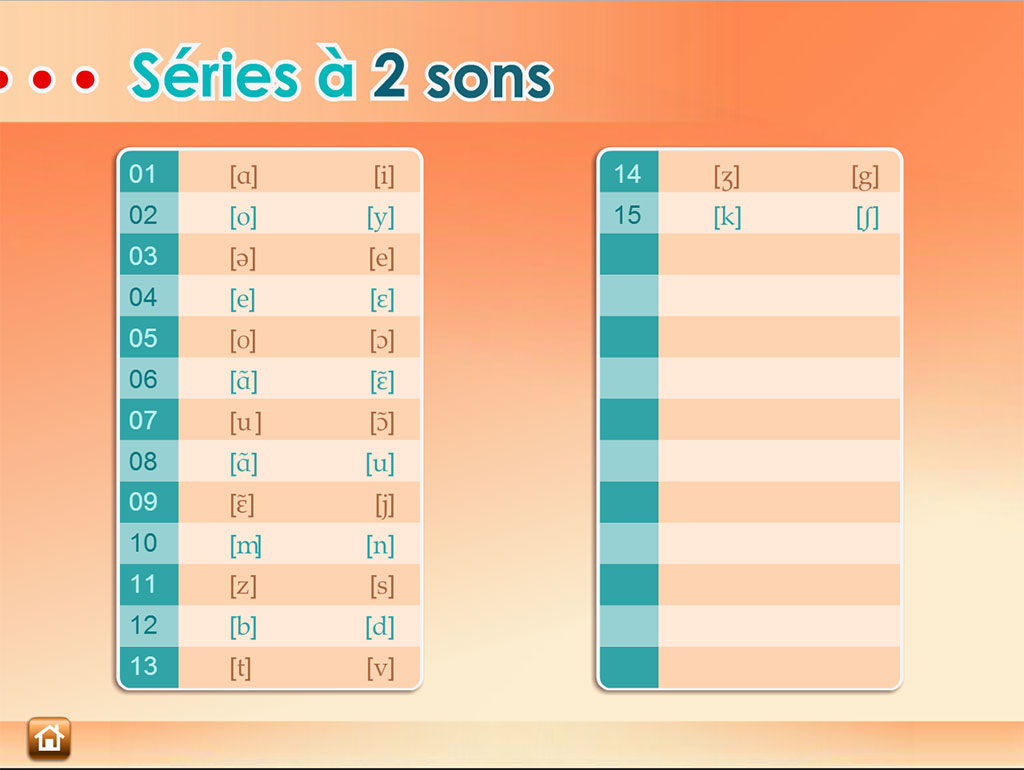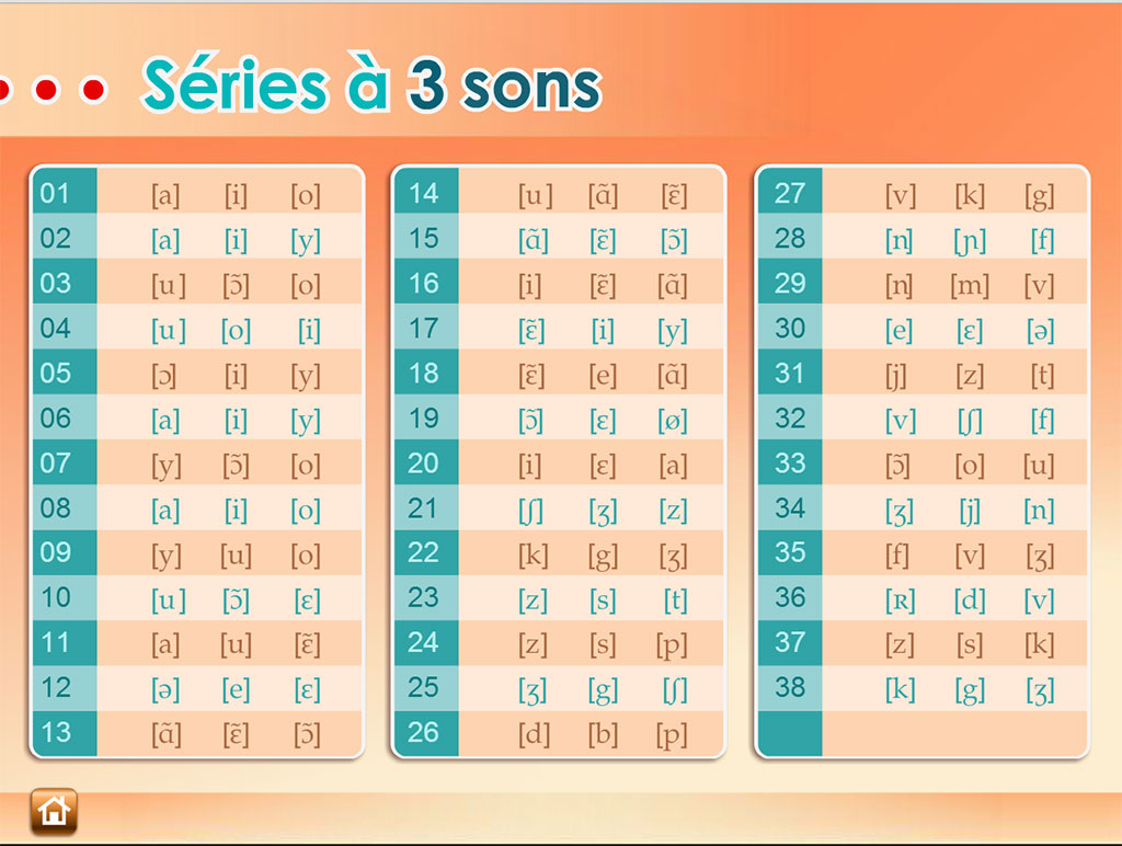 Ce programme permet de travailler la reconnaissance des sons en Maternelle (Grande section), CP et CE1 : l'enseignant peut mettre l'accent sur la discrimination auditive, sur la discrimination visuelle ou sur la combinaison des deux.