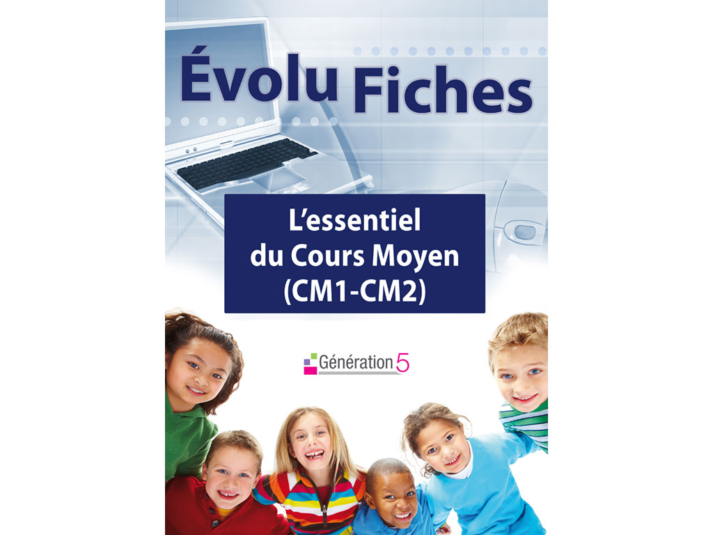 Evolu Fiches - L'Essentiel du Cours Moyen, des fiches d'activités et d'exercices avec logiciel couvrant le CM1 et CM2 et abordant les notions essentielles en français, mathématiques, sciences et techniques.